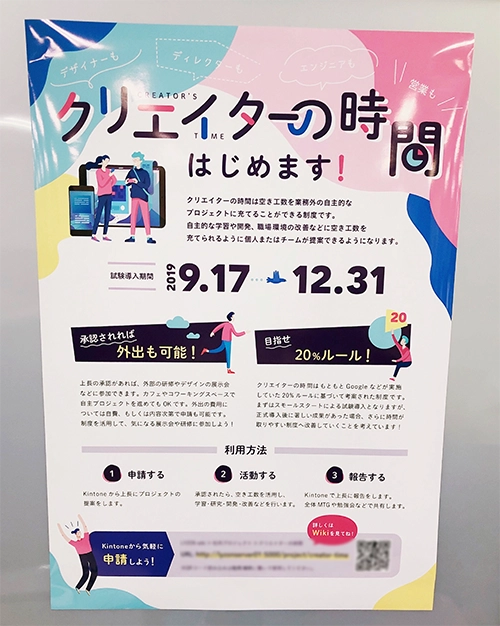 クリエイターの時間は、空いた時間を業務外の自主的なプロジェクトに充てることができる制度です。