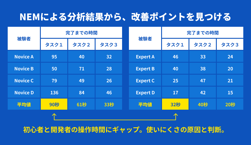 このようにNEM分析を活用して開発者も気づかない操作性の悪さ、UIの悪さを見つけ出すことができるようです。
