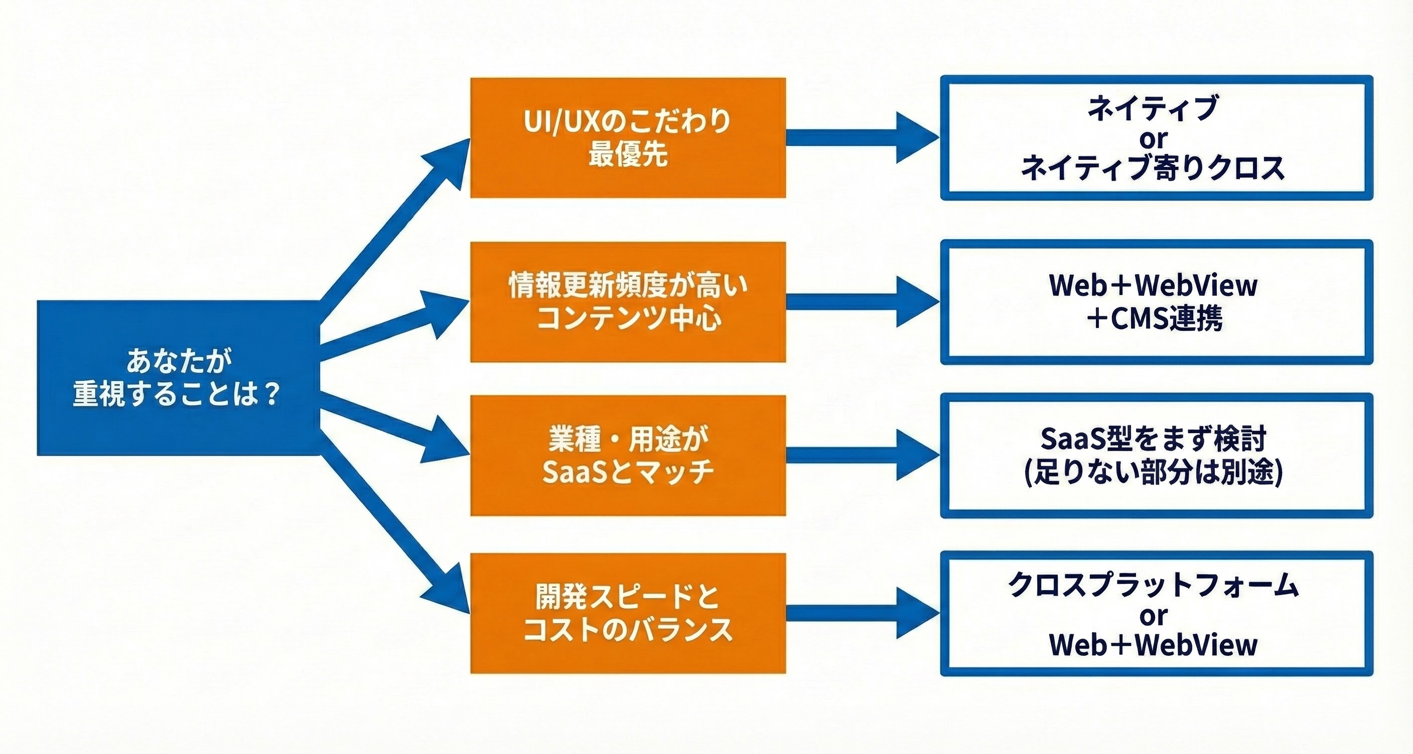 Q1. ネイティブ/クロス/Web+WebView/SaaS、結局どの方式を選べばよいですか?