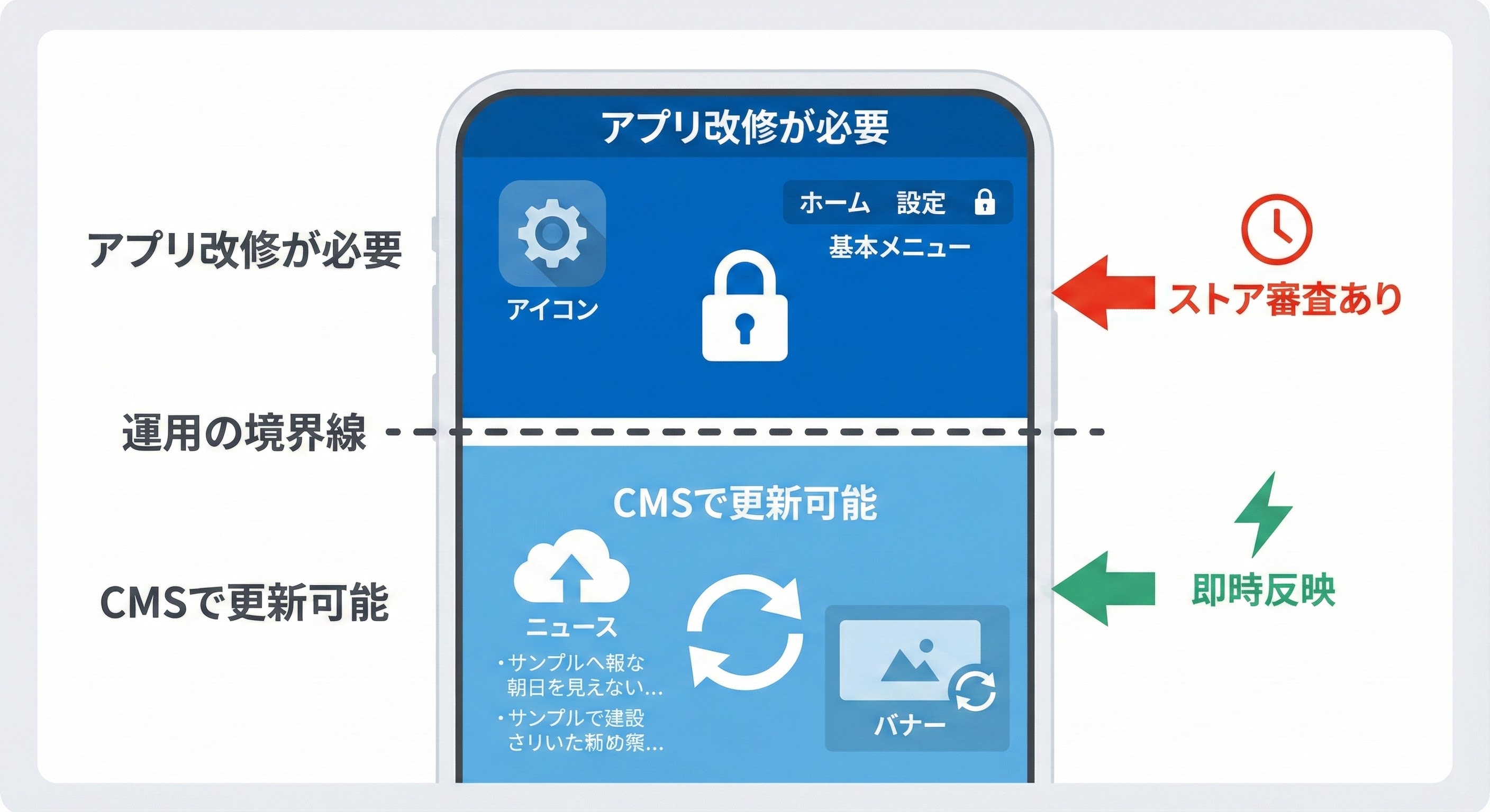 アプリの中のどの部分を、Web/CMSから更新できるようにするのか