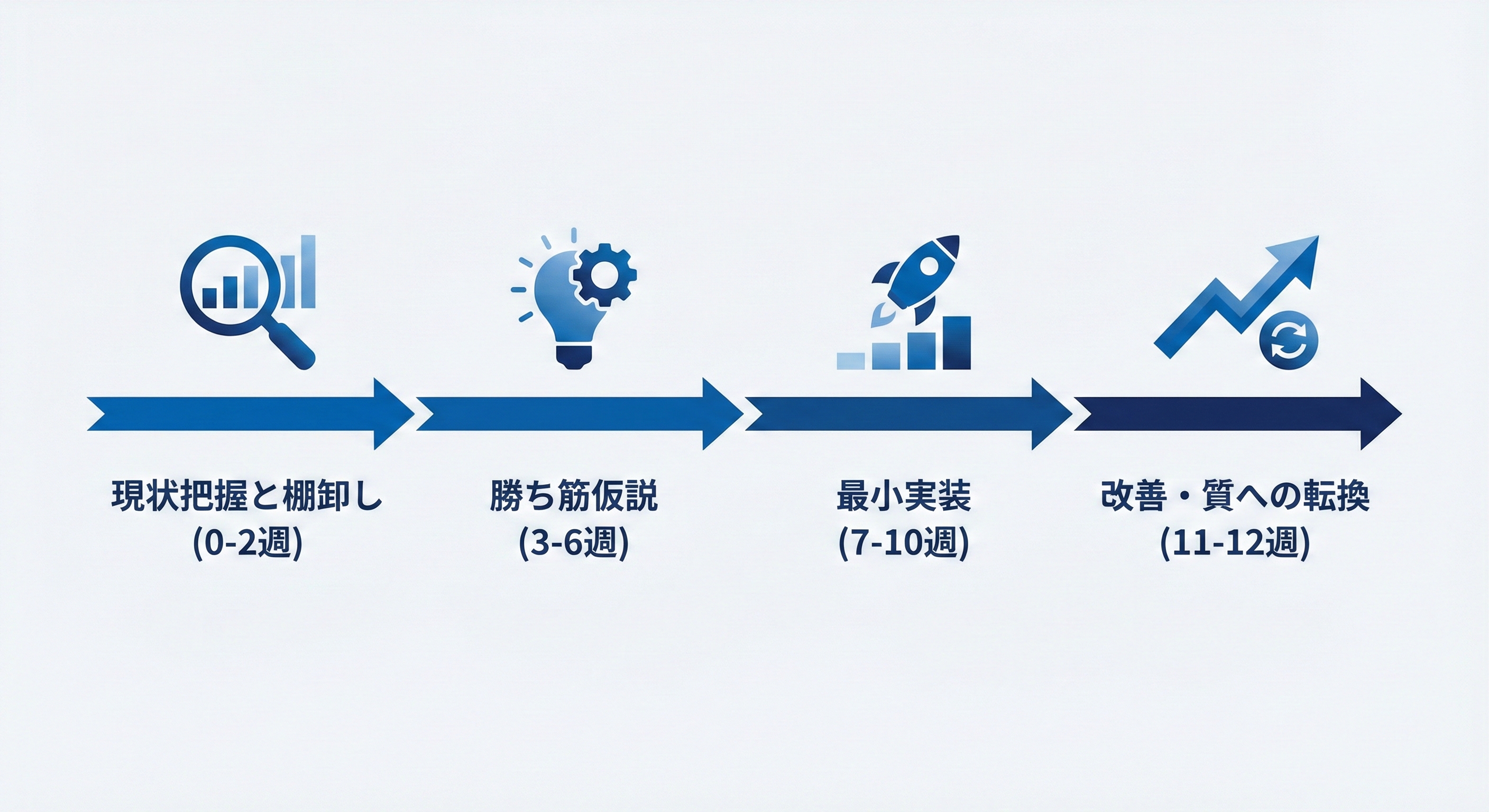 2週で棚卸し、4週で仮説、4週で最小実装、2週で改善。この順番で回すと「次の一手」が明確になり、社内合意も進みます。ロードマップは一度作ると、四半期ごとに更新して運用できます。