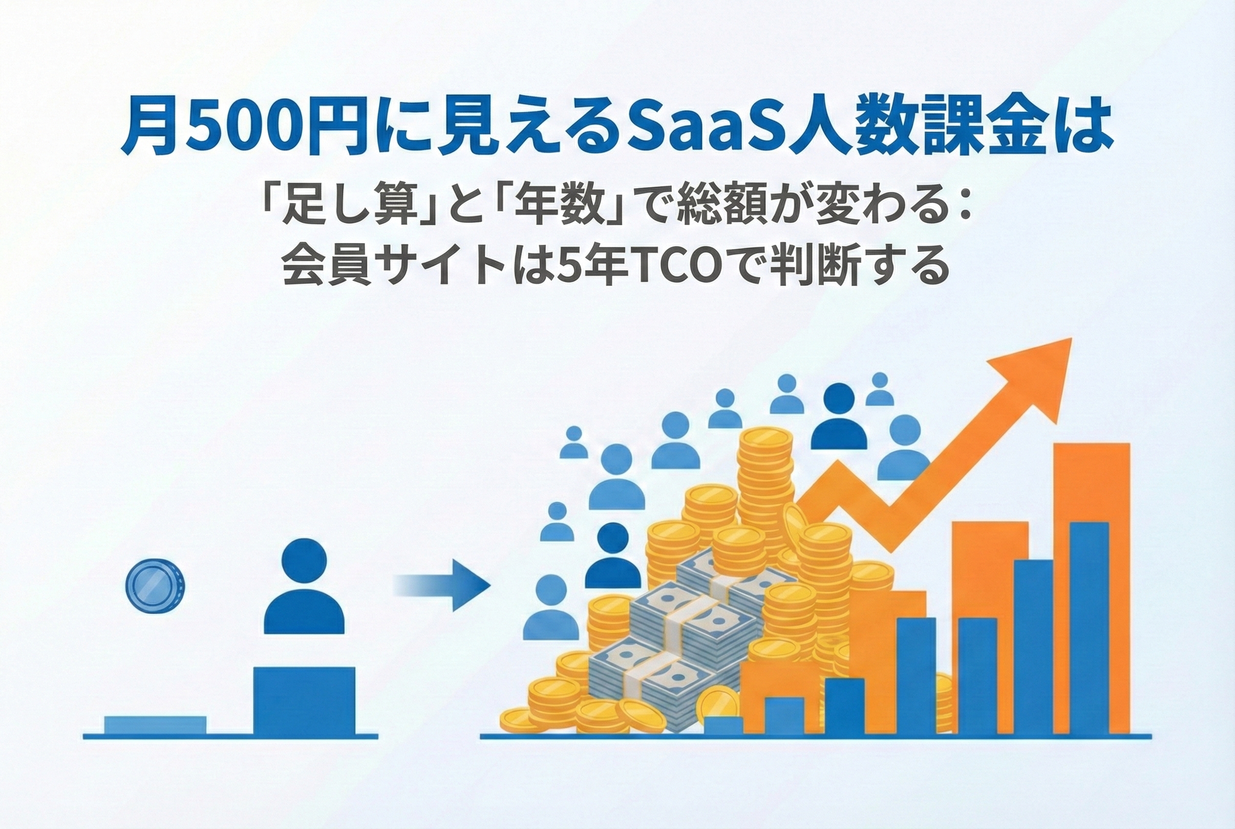 月500円に見えるSaaS人数課金は「足し算」と「年数」で総額が変わる:会員サイトは5年TCOで判断する