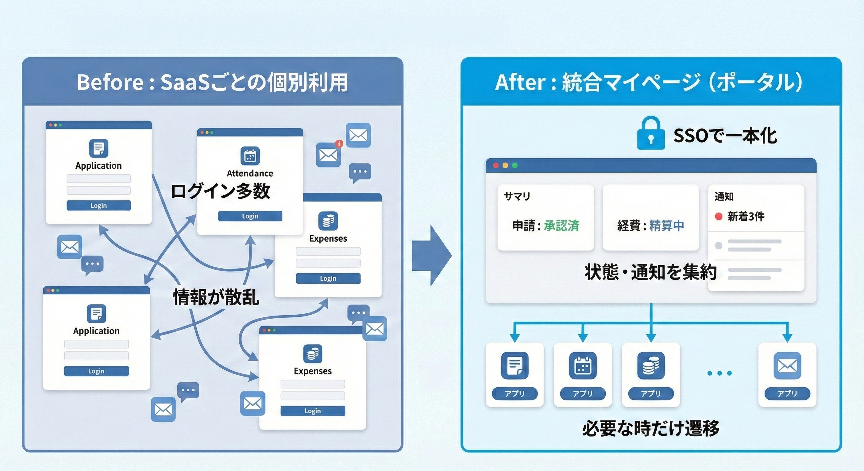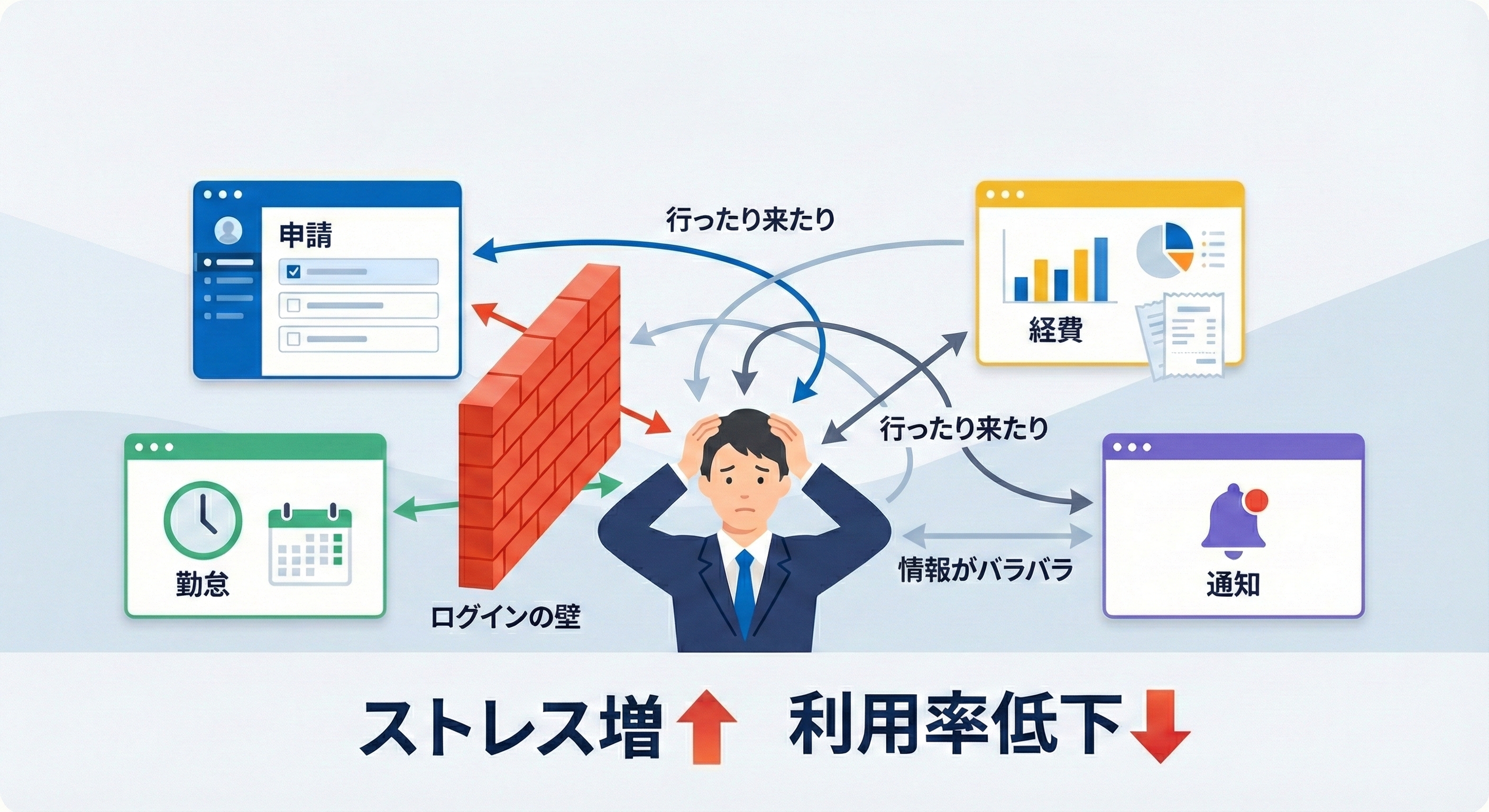 - ユーザー:ログイン先が増え、ID管理や状況確認が面倒になり、利用頻度が下がる。