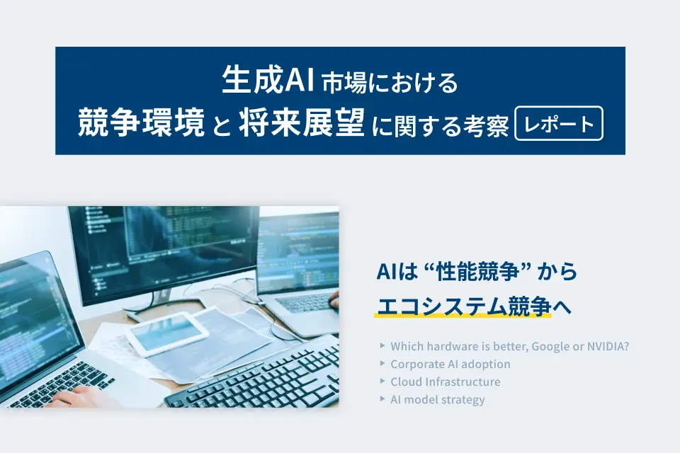 現在、AI市場の覇権争いは、表層的なモデル性能の競争から、深層にある「開発・運用基盤(エコシステム)」の争いへとシフトしています。本レポートでは、複雑化するこの競争環境を構造的に分解し、各プレイヤーの戦略的優位性と課題を明らかにしていきます。