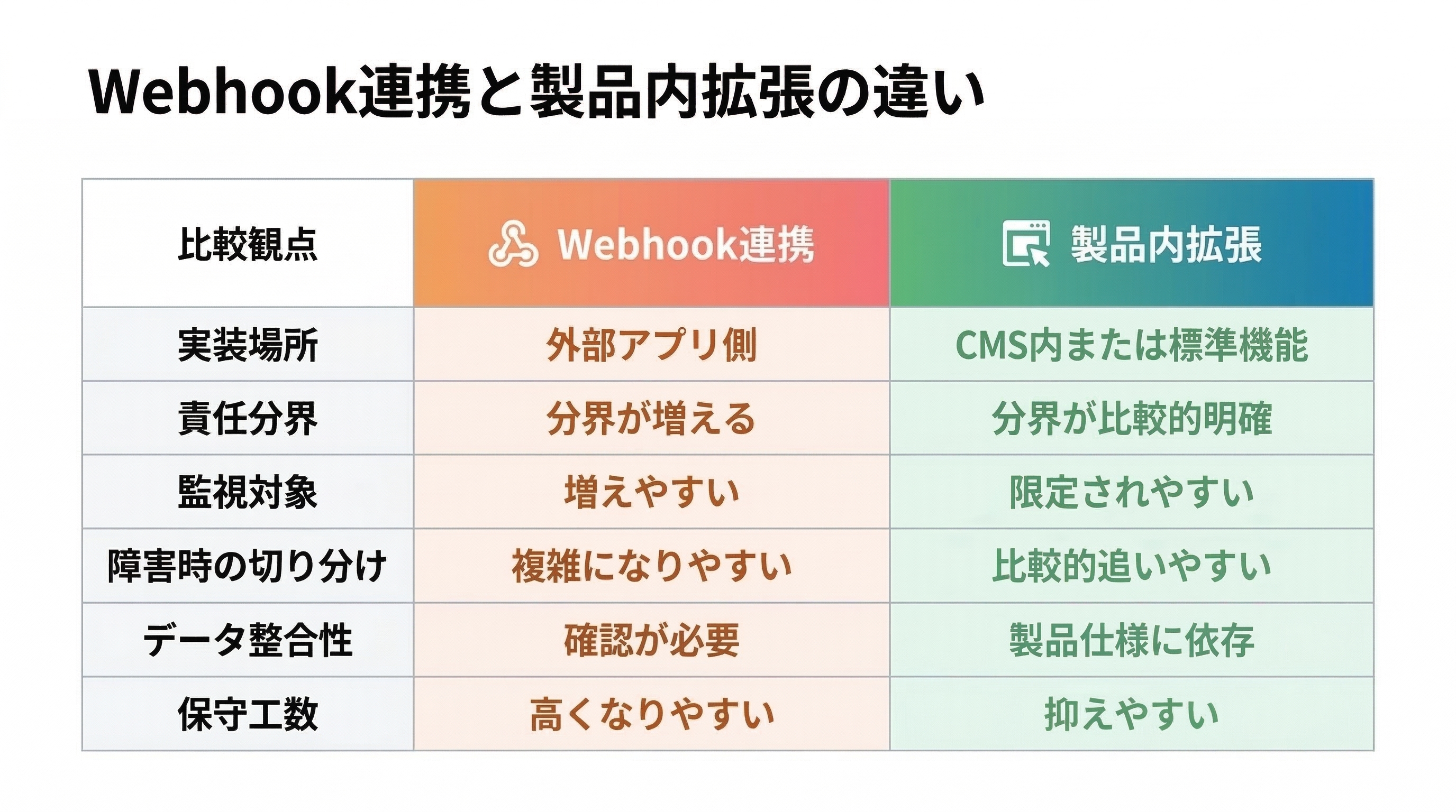 Webhookでの拡張と製品内拡張は同じではない