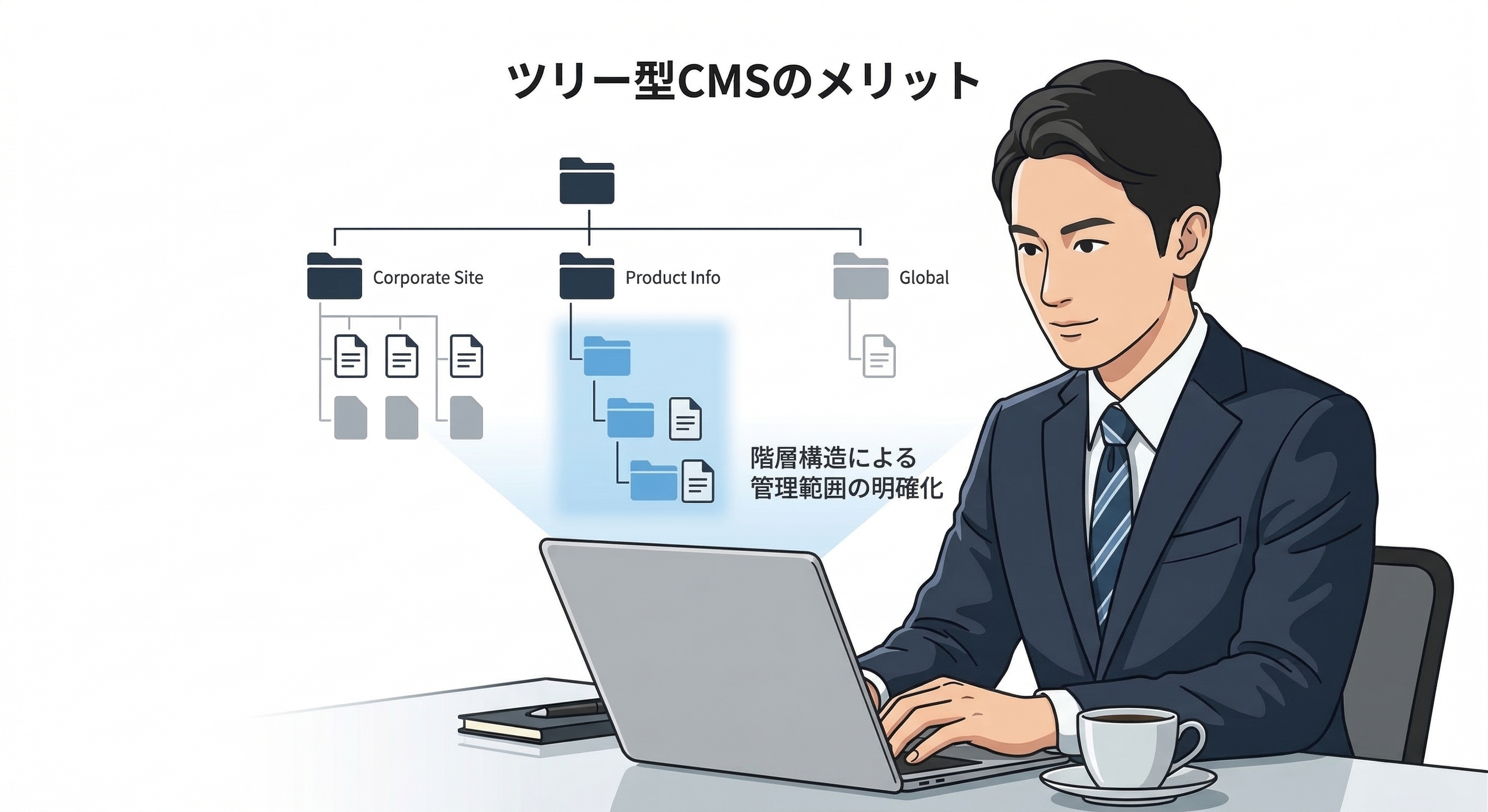 特にマルチサイト環境では、「情報の配置ルール」「更新権限の境界線」「共通部品の標準化範囲」といった判断が日常的に発生します。これらの判断を構造的に支え、大規模サイトの運用要件と整合しやすい選択肢が「ツリー型(階層型)」の管理モデルです。