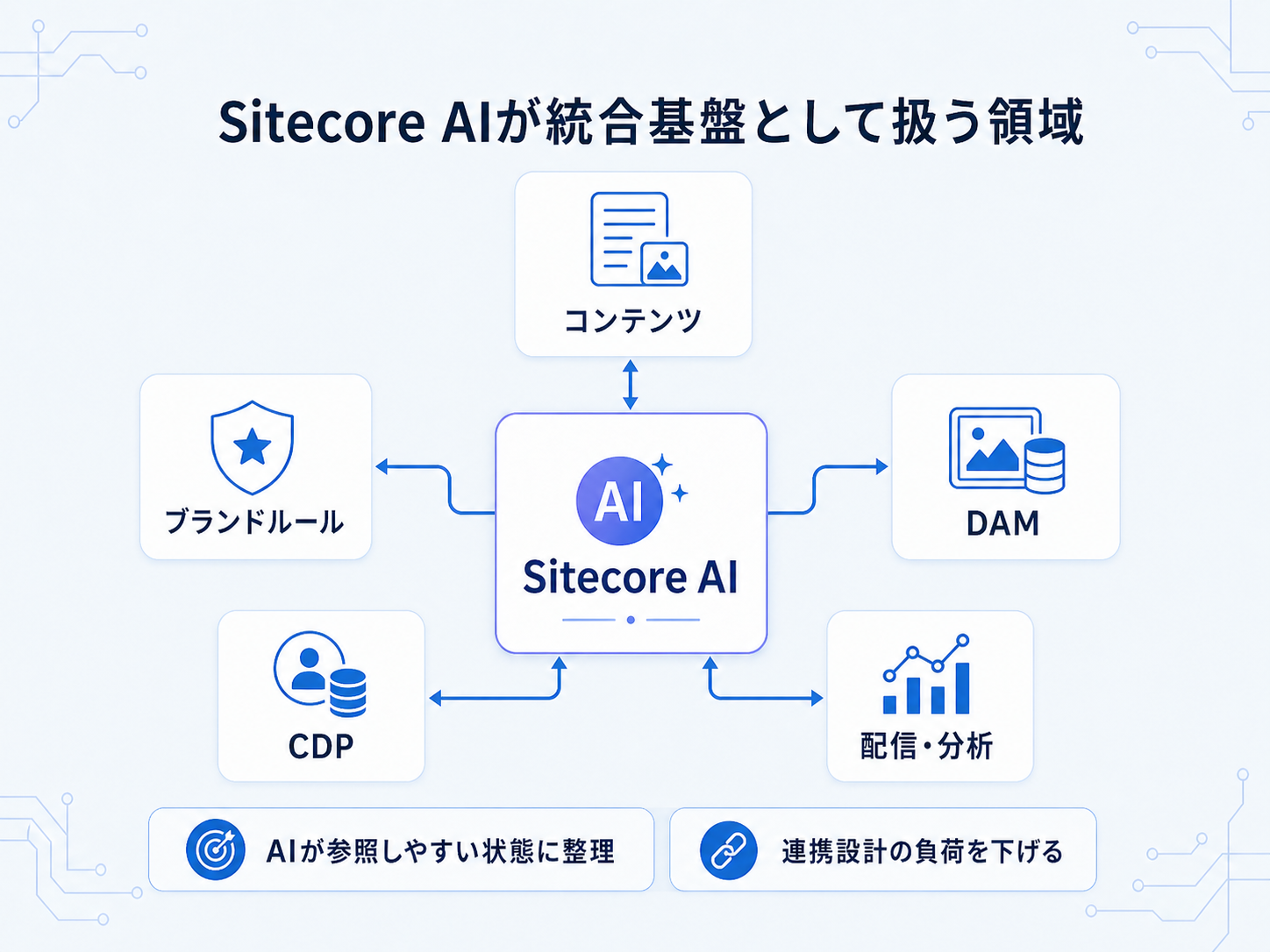 コンテンツが別の場所、DAMが別製品、CDPが別基盤、配信ログも別管理という状態では、AI機能を導入しても、参照元や連携条件の整理に時間がかかります。Sitecore AIは、その構造的な負荷を下げやすい構成になっています。