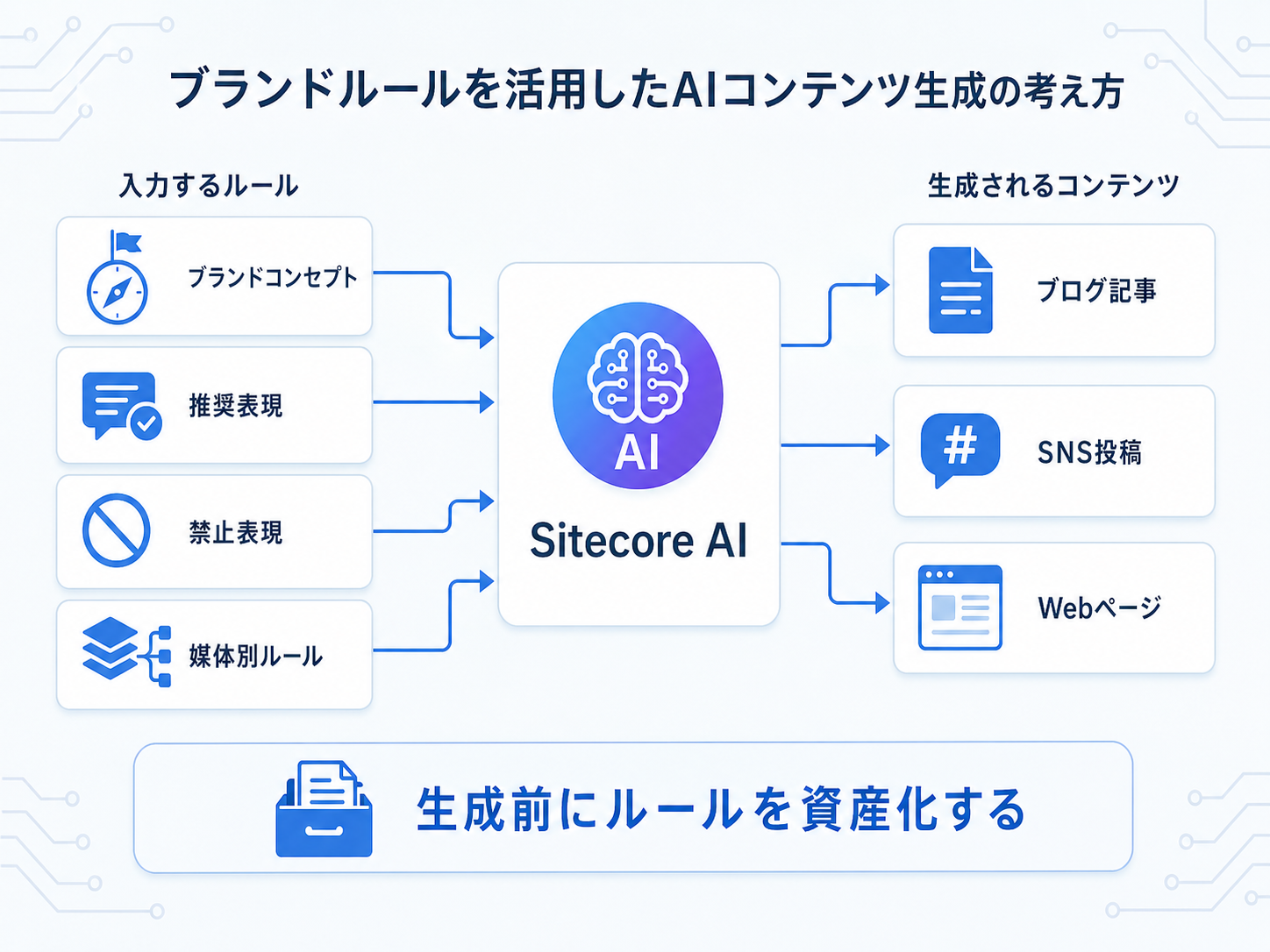 Sitecore AIの価値は、単なるコンテンツ生成ツールとしてだけではありません。ブランドイメージなど、生成の前提になる情報を構造化して保持し、そのルールを運用に組み込むことができます。その意味で、ブランド戦略との相性も非常に大きいといえます。
